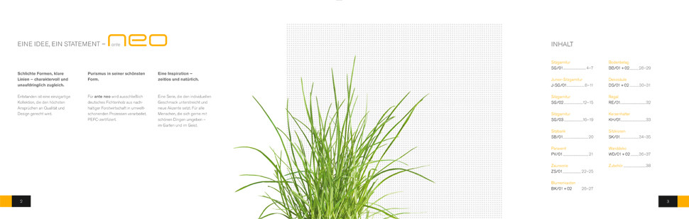 Entwicklung von Name, Logo, Produktkatalog und Promo-Box für die Markteinführung der Designmöbel-Linie ante neo.